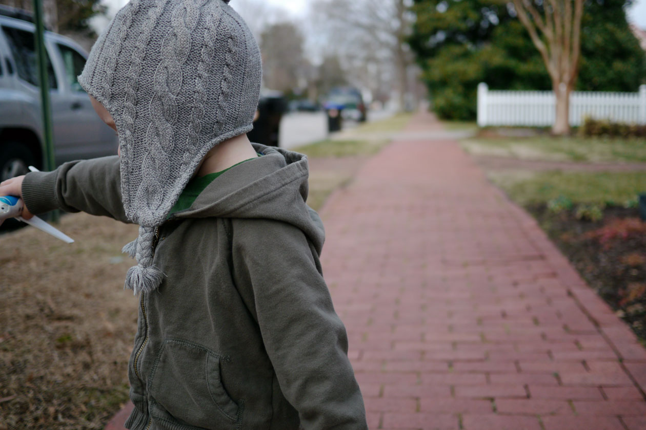 My son tagged along with me. One of the beautiful things about living in a pedestrian-scale community...